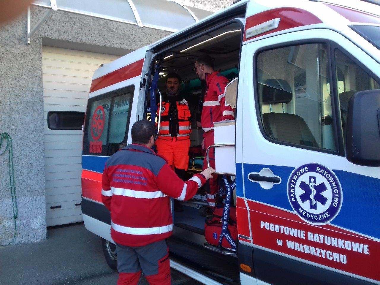 Do Zdravotnické záchranné služby Wałbrzych přijeli 2 zdravotničtí záchranáři ze Zdravotnické záchranné služby Libereckého kraje.