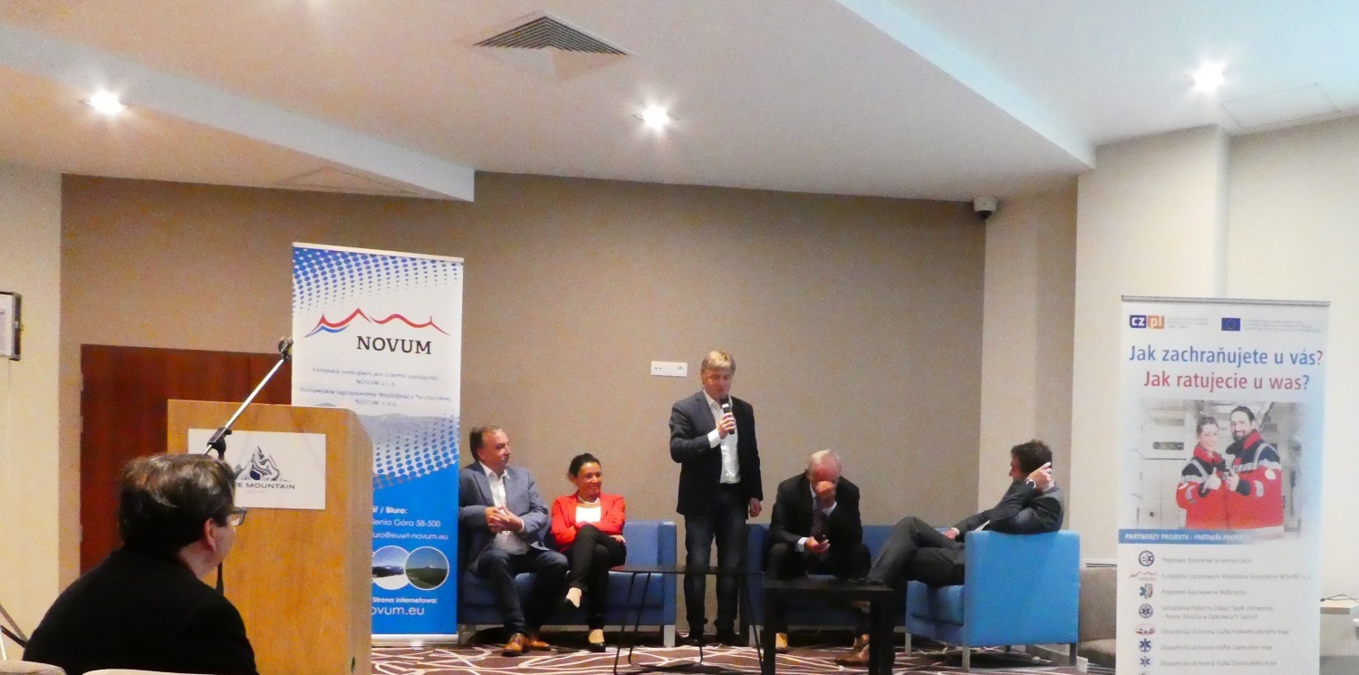 Prvním bodem programu konference bylo její slavnostní zahájení a vystoupení hostů. Potom náměstci hejtmanů s gescí zdravotnictví Královéhradeckého, Libereckého a Olomouckého kraje Aleš Cabicar, Přemysl Sobotka a Dalibor Horák společně s poslankyní Alicí Chybicką diskutovali o nutnosti uzavření Česko – polské mezivládní dohody ve věci vzájemného poskytování zdravotnických záchranných služeb. V další části představili všichni partneři projektu své zdravotnické záchranné služby. Zbývající část prvního dne a druhý den byly vyplněny přednáškami spojenými se specifikou, problémy, spoluprací a současnými aktivitami a vybavením využívaným zdravotnickými záchrannými službami jak v Polsku, tak i v Čechách.